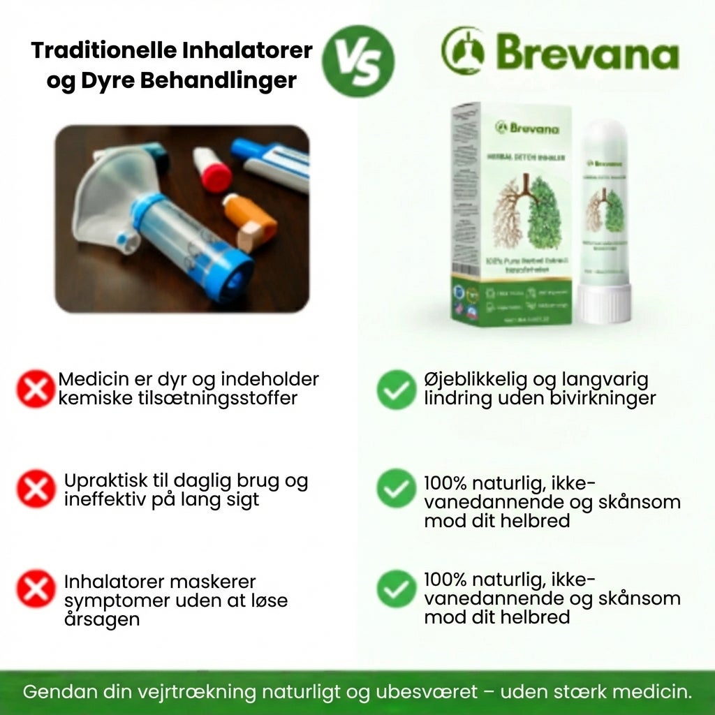 I modsætning til kemiske løsninger, der kun giver midlertidig lindring, arbejder Brevana™ i dybden og frigør lungerne effektivt – uden risiko for afhængighed eller bivirkninger.