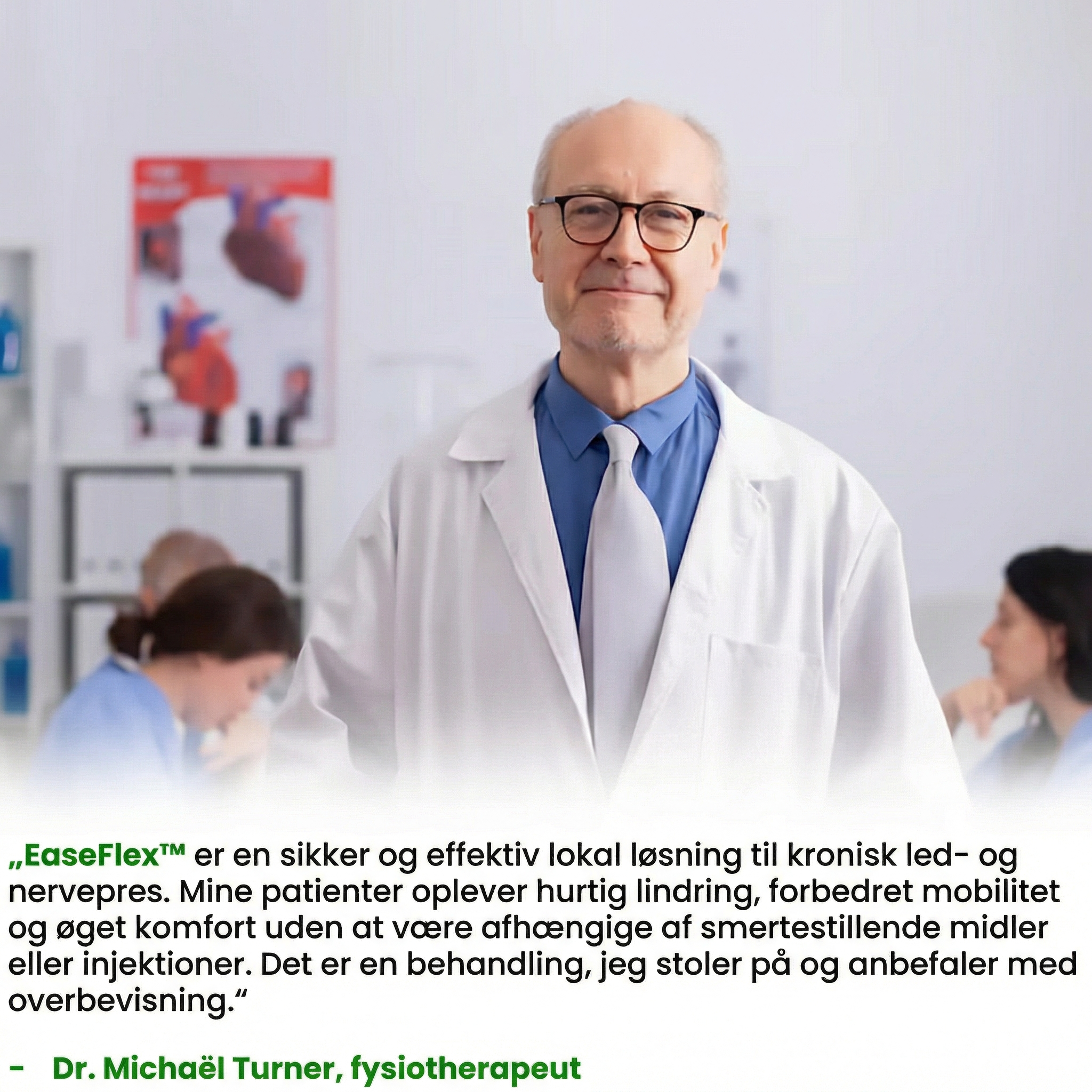 EaseFlex™ er betroet af fagfolk, fordi det understøtter naturlig bevægelighed i leddene uden medicin, injektioner eller operationer og hjælper brugere med at forblive aktive uden omfattende behandlinger.
